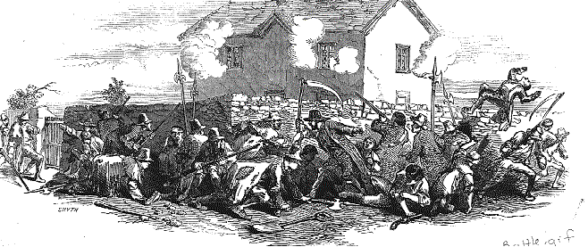 "The Affray at the Widow McCormack's House, at Boulagh Common" from the Illustrated London News, 1849.