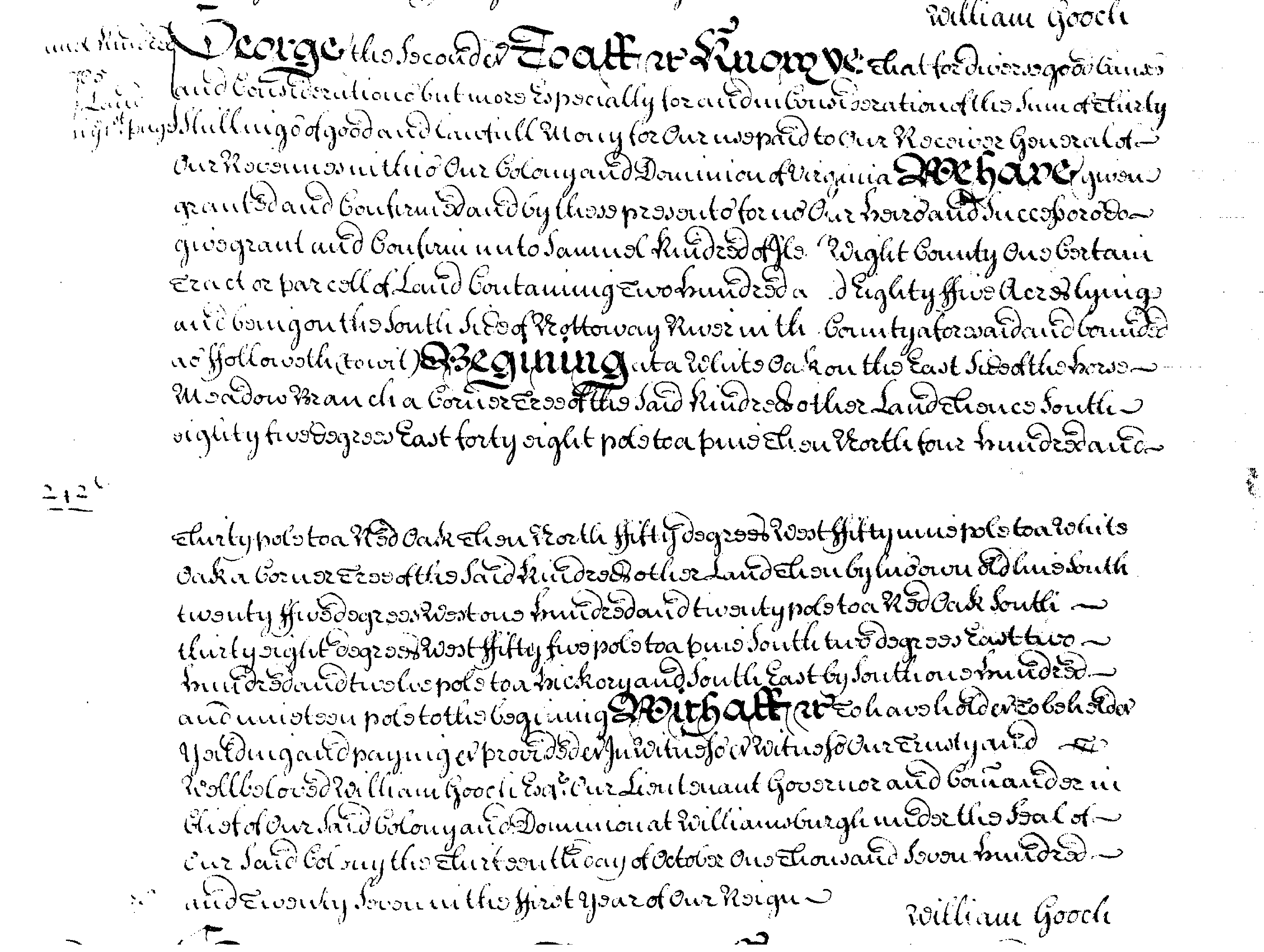 10/13/1727 Samuel Kindred patented land south of the Nottaway River in Isle of Wight Co VA